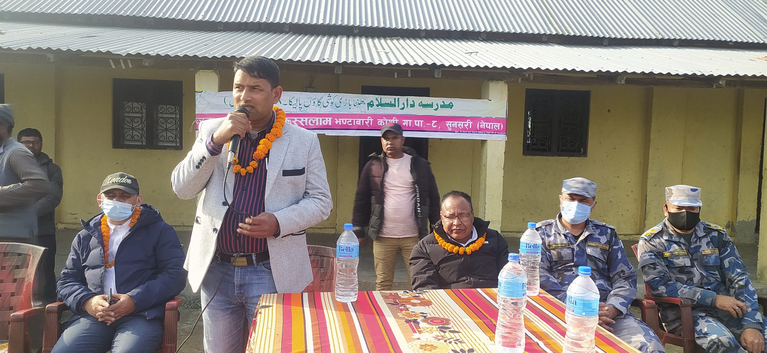 यसैबीच कोसी गाउँपालीका ८ भण्टाबारीस्थित रहेको मदरसा दारुसलामको थप दुईकोठे भवन बन्ने भएको छ । गाउँपालीकाको सहयोगमा बन्ने लागेको उक्त भवनको आइतबार कोसी गाउँपालीकाका अध्यक्ष ऐयुब अन्सारीले शिलान्यास गरेका छन् । ३० महिनाभित्र भ्याटबाहेक ४५ लाख ५८ हजार १२८ रुपैयाँ लागतमा निर्माण सम्पन्न गर्ने गरी गाउँपालीकासँग सम्झौता गरेको हित्त कन्स्ट्रक्सन प्रालि काठमाडौले निर्माणकार्यको काम सुरु गरेको छ ।