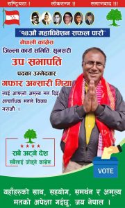 इनरुवा । आगामी बैशाख ३० गते हुने स्थानीय तहको निर्वाचनमा हरिनगर गाउँपालीका अध्यक्ष पदका लागि गफार मियाँ अन्सारीले पुनः उम्मेदवारी दिएका छन् । सुनसरी जिल्ला नेपाली काङ्ग्रेस पार्टीका प्रभावशाली व्यक्ति समेत रहेका अन्सारी गरीब, मजदुर, विपन्न तथा सर्वहाराका निम्ति सदैव काम गर्दै आएका छन् । २०७४ सालको निर्वाचनमा पनि हरिनगर अध्यक्षमा निर्वाचित भएर जनताको काममा प्रत्यक्ष सहभागी भएका उनले यस क्षेत्रका जनताको समस्या समाधान गर्न अहोरात्र खटिदै आएका छन् । त्यसैले हरिनगर क्षेत्रका जनता अन्सारीलाई लोभलाग्दो र आशलाग्दो नेताका रूपमा स्थापित गरेका छन् । पहिलो कार्यकालमा बाँकी रहेका कामहरूलाई पूर्णता दिन दोश्रो कार्यकाल आवश्यक भएको बताउँदै उनले हरिनगर गाउँपालीकालाई प्रदेश नम्बर १ कै नमुना पालीका बनाउने दाबी गर्छन् ।