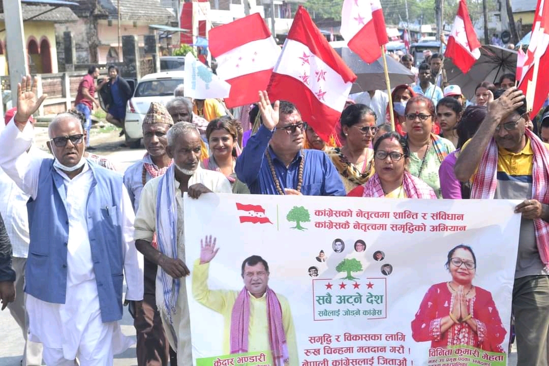यसैबीच इनरुवामा मंगलबार नेपाली काङ्ग्रेसले बृहत चुनावी आम सभा कार्यक्रम आयोजना गरेको छ । नेपाली काङ्ग्रेस सुनसरीको पार्टी कार्यालयबाट सयौंको सहभागितामा आयोजित उक्त कार्यक्रममार्फत काङ्ग्रेसले शक्ति प्रदर्शन गर्दै इनरुवा–४ बस चौकमा बृहत चुनावी आम सभा आयोजना गरेको हो । चुनावी आमसभालाई सम्वोधन गर्दै संघीय सांसद सिताराम मेहताले नेपाली काङ्ग्रेसलेक इनरुवा नगरपालिकामा योग्य र दक्ष व्यक्तिहरुलाई टिकट दिएकाले जिताउन आवश्यक रहेको बताए ।