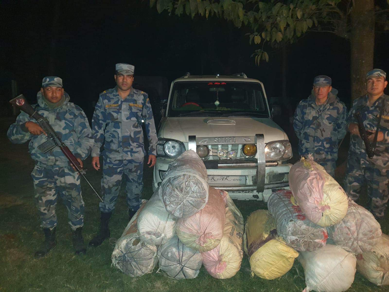 इनरुवा । सशस्त्र प्रहरीले बिओपी वसन्तपुरबाट खटिएको इन्स्पेक्टर सुमन रानाभाट नेतृत्वको सशस्त्र प्रहरीको टोलिले ठुलो परिणाममा गाँजा बरामद गरेको छ ।सोमबार अन्दाजी राति १० बजेको समयमा सुनसरी जिल्लाको हरिनगर गाउँपालीका वडा नम्बर ५ स्थित बसन्तपुर बिओपी बाट खटिएको भारतीय BR AK 6100 नम्बरको स्कारपिओमा भारततर्फ लैजादै गरेको अवस्थामा २५० केजी गाँजा बरामद गरेको भएको हो । गाँजा बरामद गरिएपनि गाडीमा सवार तस्कर भाग्न सफल भएका छन् ।