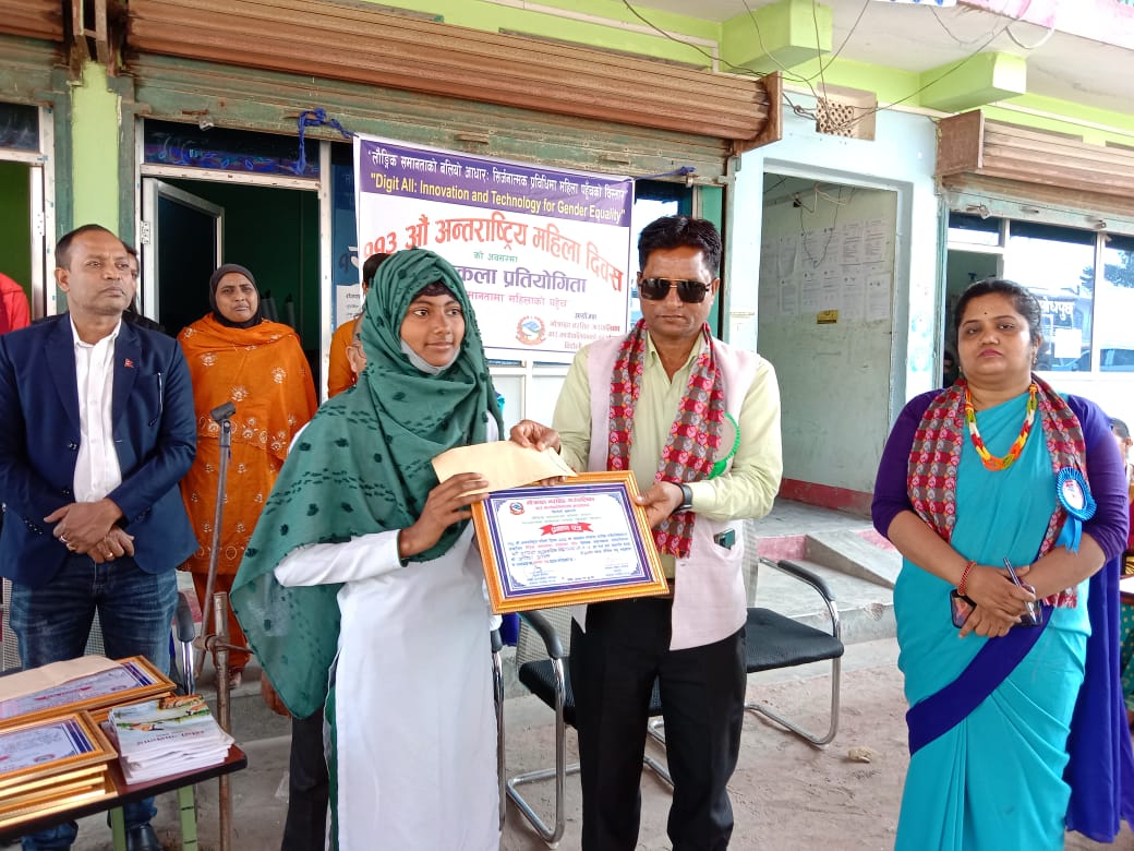 सो कार्यक्रममा करिब १ दर्जन छात्रा तथा महिला कर्मचारीहरुले भाग लिएकोमा समिया प्रविन प्रथम, सीता साह द्वितीय, नवर्दा आचार्य तृतीय र मुस्कान प्रविन, सलमा खातुन, ममता यादव ,अक्लेश्वरी मन्डल लगायतले पुरस्कार र प्रमाणपत्र हात पार्न सफल भएका छन् । उक्त कार्यक्रममा सहभागी सम्पूर्ण महिला कर्मचारी तथा विद्यार्थीहरुलाई गाउँपालिकाको तर्फबाट सम्मान गरिएको कार्यक्रम संयोजक पर्भा खनालको भनाइ छ । कार्यक्रमका प्रमुख अतिथि भोक्राहा नरसिंह गाउँपालिका अध्यक्ष अजमल अख्तर आजाद , विशिष्ट अतिथी सोही पालिकाका प्रमुख प्रशासकीय अधिकृत सुवर्ण घिमिरे अथितिहरुमा प्रधानाध्यापक रबिन्द्र कोइराला लगायतको उपस्थिति रहेको थियो । समापन कार्यक्रमलाई सम्बोधन गर्दै अध्यक्ष आजादले नारीलाई सबैले सम्मान गर्नुपर्नेमा जोड दिएका थिए। कार्यक्रम संयोजक पर्भा खनाल लगायतले नारी दिवसको महत्व र नारीका समस्याहरुका बारेमा पनि चर्चा गरेका थिए ।