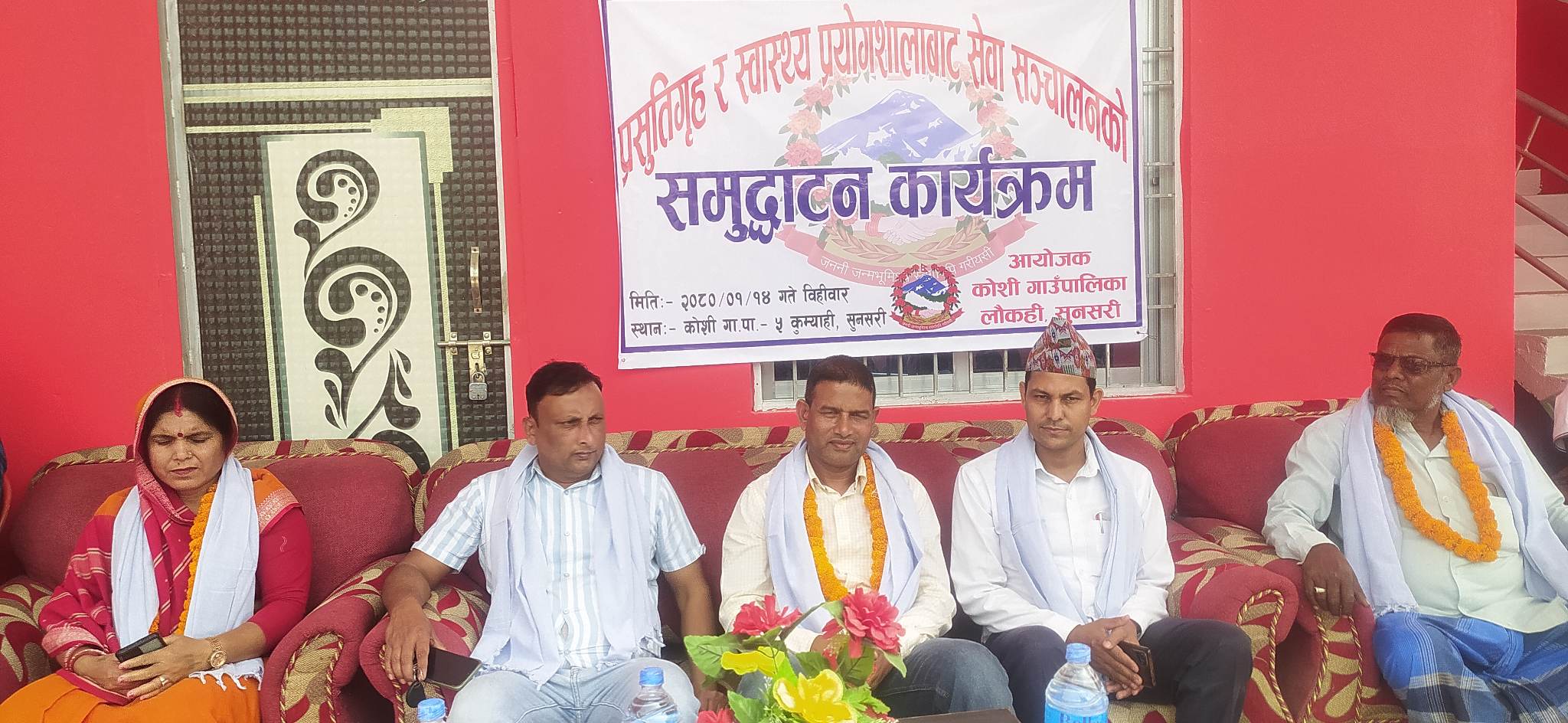 इनरुवा । सुनसरीको कोशी गाउँपालिका वडा नम्बर ५ मा निर्माण गरिएको प्रसूति गृह सञ्चालनमा आएको छ ।कोशी गाउँपालीका वडा नम्बर १ र वडा नम्बर ७ मा रहेको स्वास्थ्य चौकीको प्रसुती सेवा केन्द्र प्रभावकारी बन्दै गएपछि कोसी गाउँपालीका वडा नम्बर ५ कुम्याहीमा अर्को प्रसुती गृह र स्वास्थ्य प्रयोगशाला सेवा संचालनमा आएको छ ।कोशी गाउँपालीकाको ५० लाख लागतमा निर्माण भएको आठ कोठे भवनको एक कार्यक्रमका बीच गाउँपालीका अध्यक्ष ऐयुब अन्सारीले बिहीबार उद्घाटन गरेका हुन । गाउँमै सर्वसाधारणलाई सेवा दिने उद्देश्यले उपभोक्ता समितिमार्फत ५० लाख लागतमा प्रसुती गृह रप्रयोगशाला सेवा संचालनमा ल्याइएको कोसी गाउँपालीका वडा नम्बर ५ का अध्यक्ष शाह जमालले जानकारी दिए ।