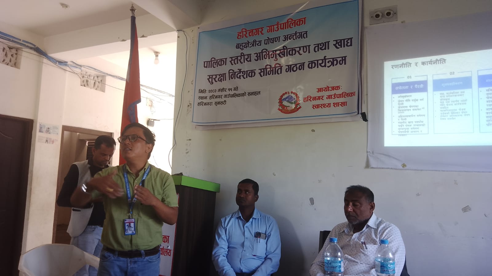 हरिनगर । हरिनगर गाउँपालिका, स्वास्थ्य शाखाले क्षेत्रिय पोषण अभिमुखिकरण कार्यक्रम सम्पन्न गरेको छ । हरिनगर गाउँपालिकालाई कुपोषण मुक्त बनाउनका लागि शिक्षा, स्वास्थ्य , कृषि , पशु , लगायत क्षेत्रलाई समेटेर सबै जनतालाई स्वस्थ्य सन्तुलित आहार खानका लागि उत्प्रेणा दिई हरिनगरबासीहरुलाई कुपोषणको शिकार हुनबाट जोगाउनका लागि बहुक्षेत्रिय पोषण कार्यक्रम सञ्चालन हुँदै आएकोमा सोही सम्बन्धि अभिमुखिकरण कार्यक्रम सम्पन्न गरेको हो । हरिनगर गाउँपालिकाका अध्यक्ष हाजी गफार अन्सारीको अध्यक्षतामा सम्पन्न सो कार्यक्रममा उपाध्यक्ष रिमझिम भगत ,प्रमुख प्रशासकीय अधिकृत तुलाराज थापा मगर,वडाध्यक्षहरु,कार्यपालिका सदस्यहरु ,विषयगत शाखाका प्रमुखहरु , पत्रकारहरु समेतको उपस्थिति रहेको थियो ।