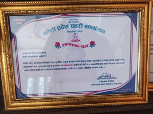 लौकही । कोशी प्रदेशले प्रहरी कार्यालय बिराटनगरले कोशी गाउँपालीका अध्यक्ष ऐयुब अन्सारीलाई सम्मानपत्र सहित सम्मान गरेको छ । प्रहरी दिवस २०८० को अवसरमा कोशी प्रदेश अन्तर्गत शान्तिपूर्ण एवं सुरक्षित समाज कायम राख्ने कार्यमा नेपाल प्रहरीलाई अनुकरणीय योगदान गरेको भन्दै उनलाई सम्मान गरिएको हो । कोशी गाउँपालीका अध्यक्ष ऐयुब अन्सारीलाई नेपाल प्रहरीका प्रतिनिधि प्रहरी नायब निरीक्षकले सोमबार गाउँपालीकाको कार्यालयमा सम्मानपत्र हस्तान्तरण गरे ।