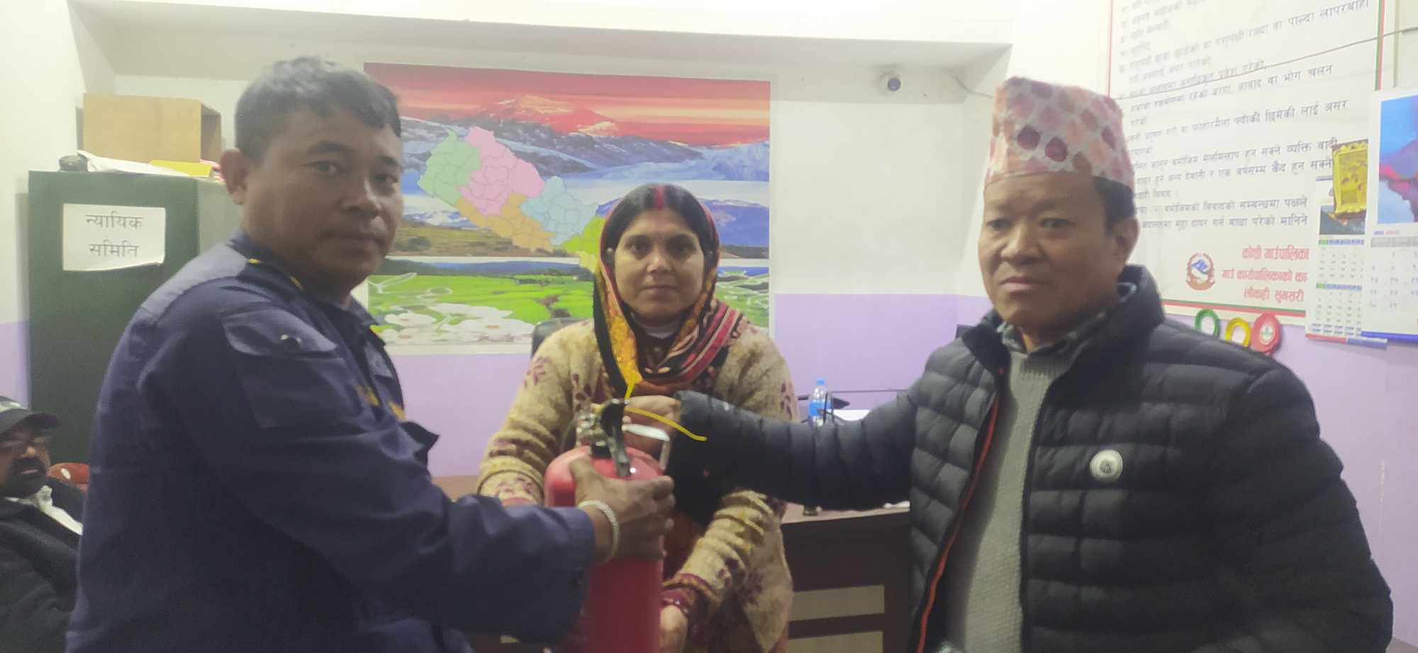 कोशी गाउँपालीका वडा नम्बर ३ का वडा अध्यक्ष सुलेमान मन्सुरी,वडा नम्बर ५ का वडा अध्यक्ष साह जमाल, कोशी गाउँपालीकाका लेखा अधिकृत सुरप्रसाद दंगाल,कोशी गाउँपालीका अध्यक्षका स्वकीय सचिव धर्मेन्द्र विश्वास लगायतको उपस्थितिमा कोशी गाउँपालीकाकी उपाध्यक्ष अनिता यादवले आगो निभाउने सिलेन्डर हस्तान्तरण गर्नुभयो ।